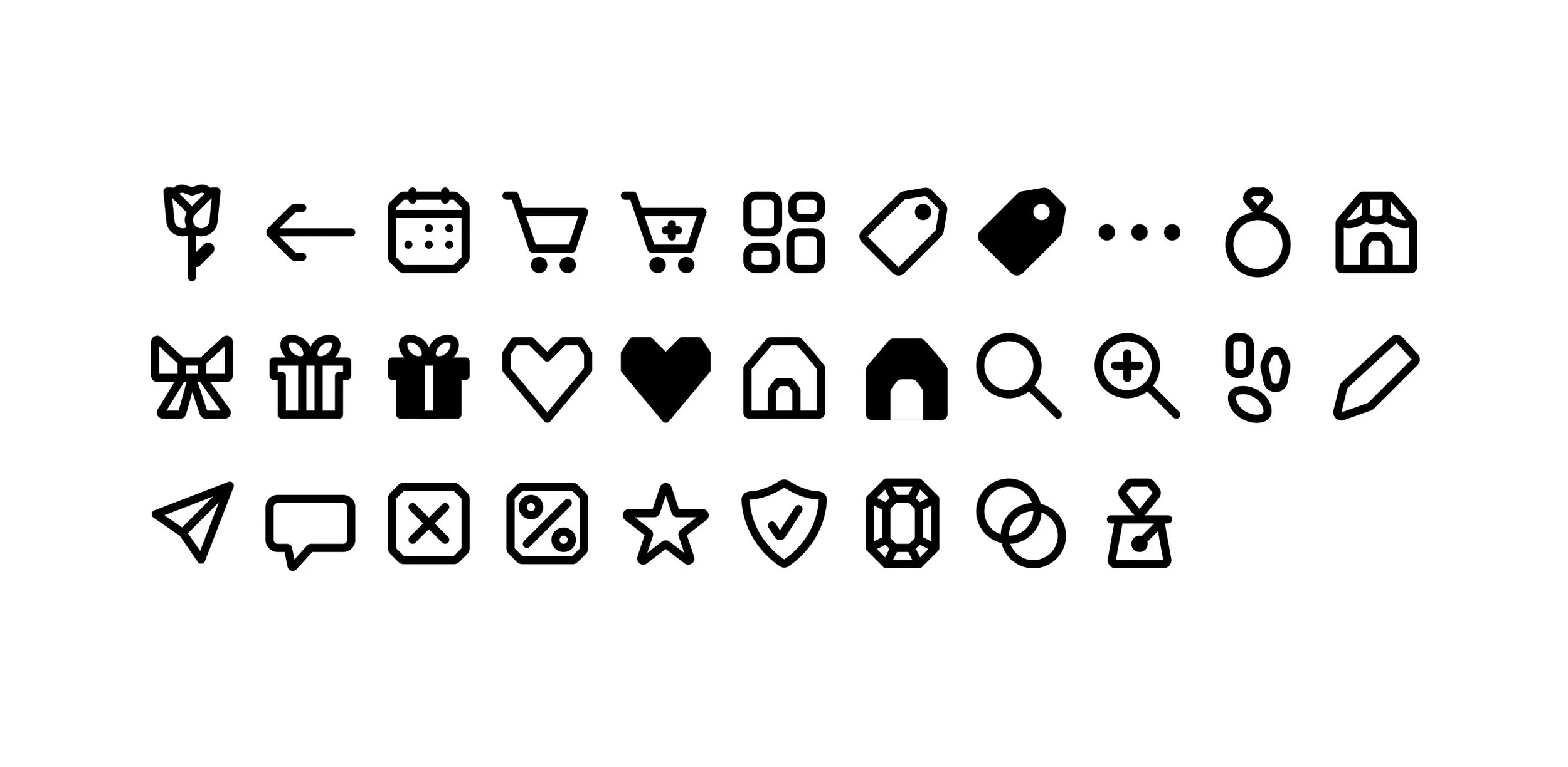 This icon set echoes the brand’s comforting, rounded typography while introducing a subtle bevel that nods to the faceted edge of an emerald.